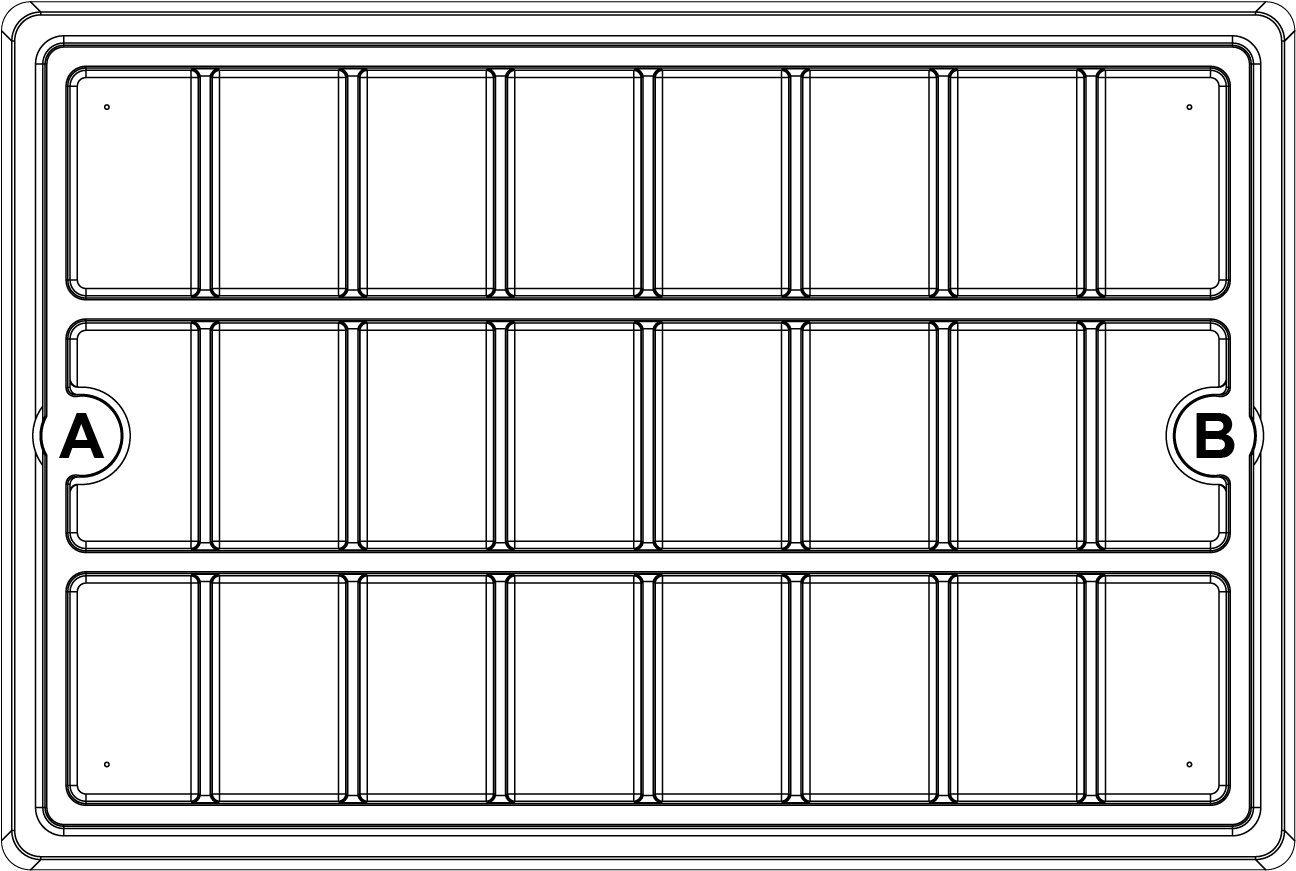 Les bacs à eau peuvent être complétés par divers produits de notre gamme Horti-Flow. Si nécessaire, nous pouvons percer des trous pour l'alimentation et/ou l'évacuation de l'eau. La position possible de ces trous est indiquée dans l'image ci-dessous et dans les options lors de la commande.