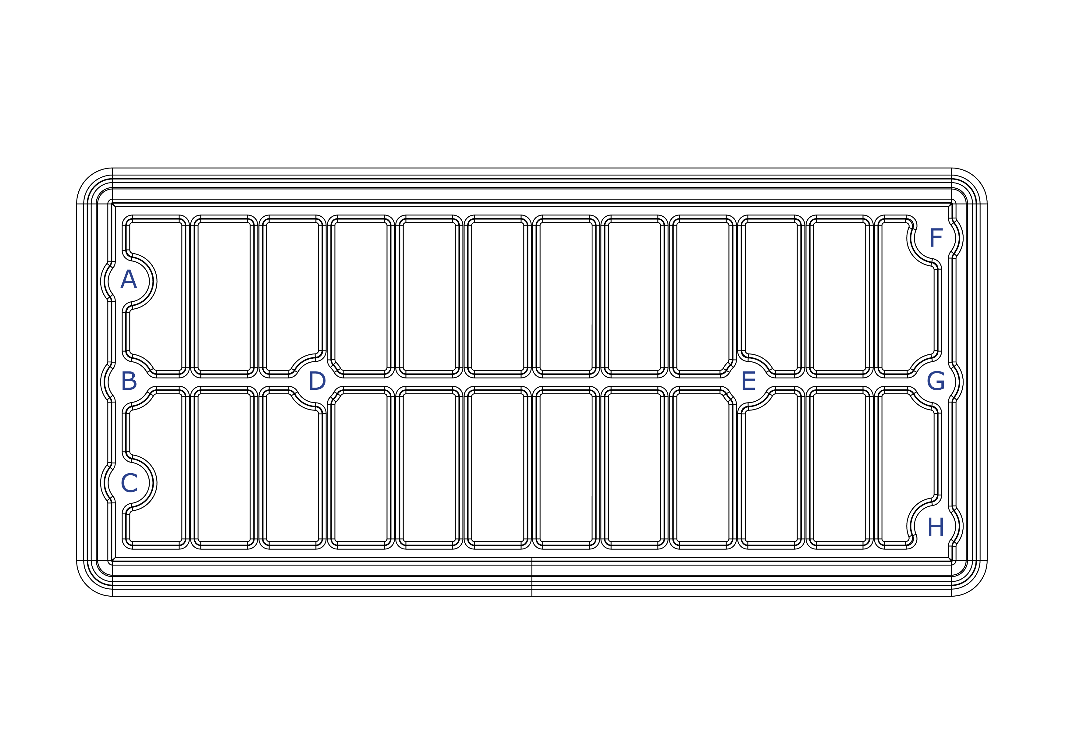 Si vous le souhaitez, nous pouvons percer les trous pour vous. Les emplacements possibles sont indiqués dans l'image ci-dessous et précisés dans les options lors de la commande.