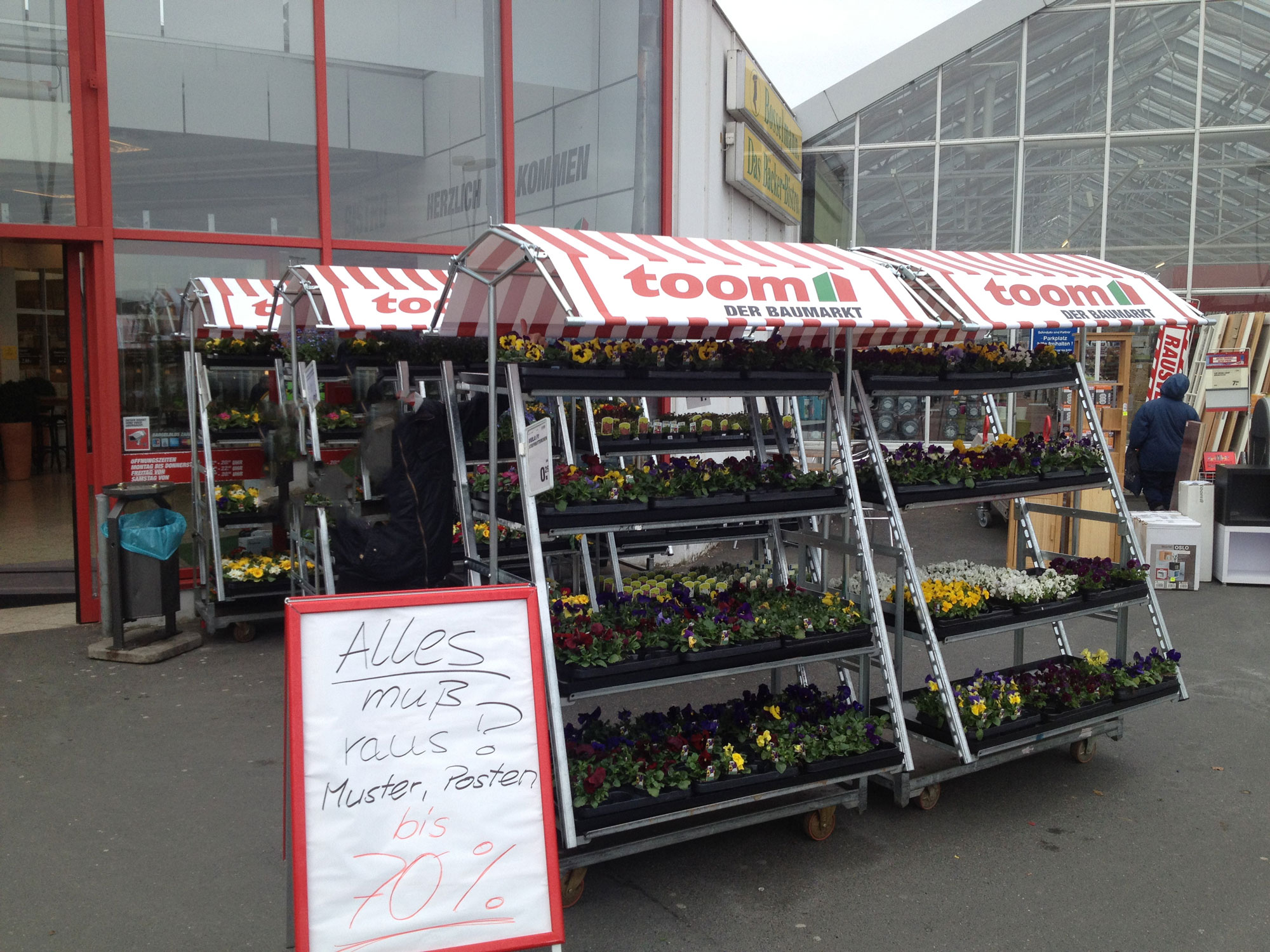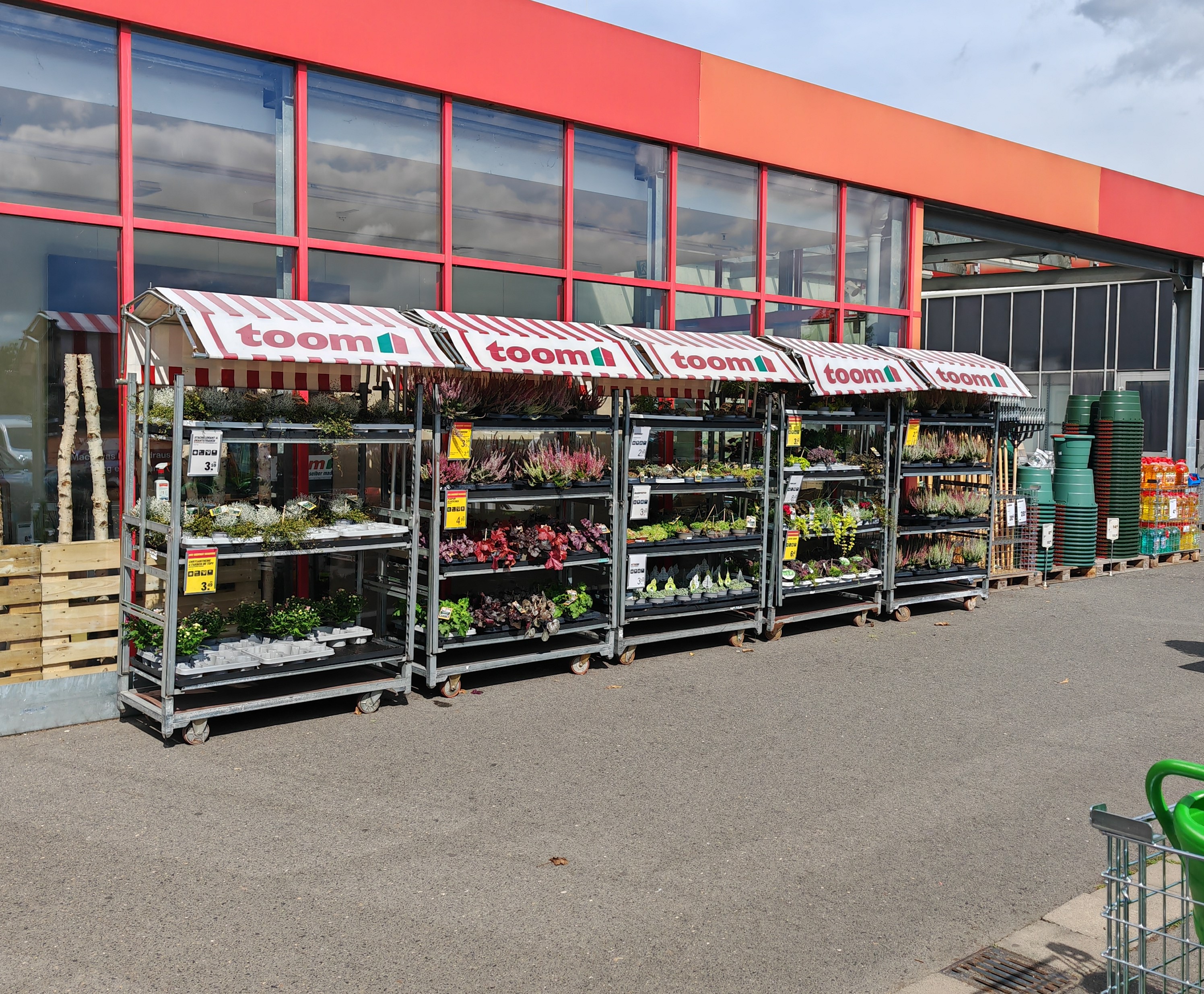 Toom Baumarkt, l'un des plus grands magasins de bricolage d'Allemagne, nous a demandé en 2013 de l'aider à réfléchir à une meilleure présentation extérieure de sa gamme de plantes. Outre l'amélioration des ventes, il s'agissait également de maintenir la qualité des plantes, car trop de plantes étaient jetées en raison d'un taux de rotation trop faible, combiné aux conditions météorologiques et à un arrosage non optimal.