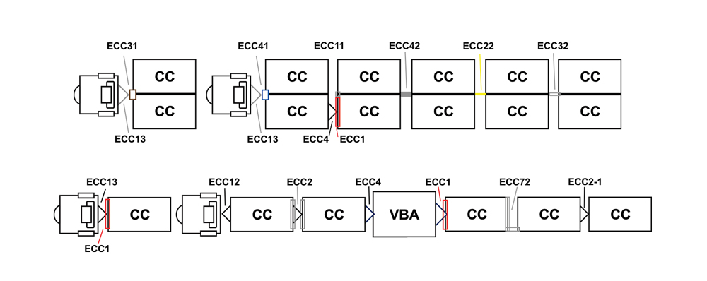 Avec la pièce argentée du coupleur ECC2 pour chariots danois et containers CC, il est possible de créer un train.